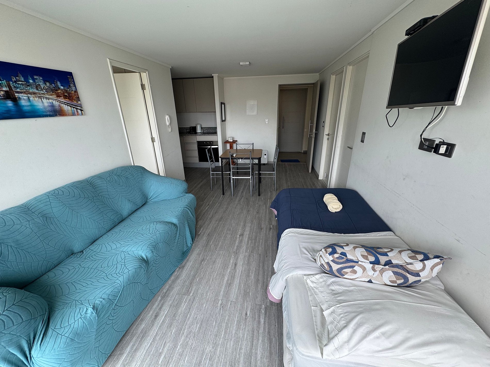 Depto. de 2 dormitorios, el cual cuenta con una cama de 2 plazas en dormitorio principal + una cama de 1 plaza en segundo dormitorio + una cama de 1 plaza en la sala, ubicación central y tranquila a metros de AV. Alemania.