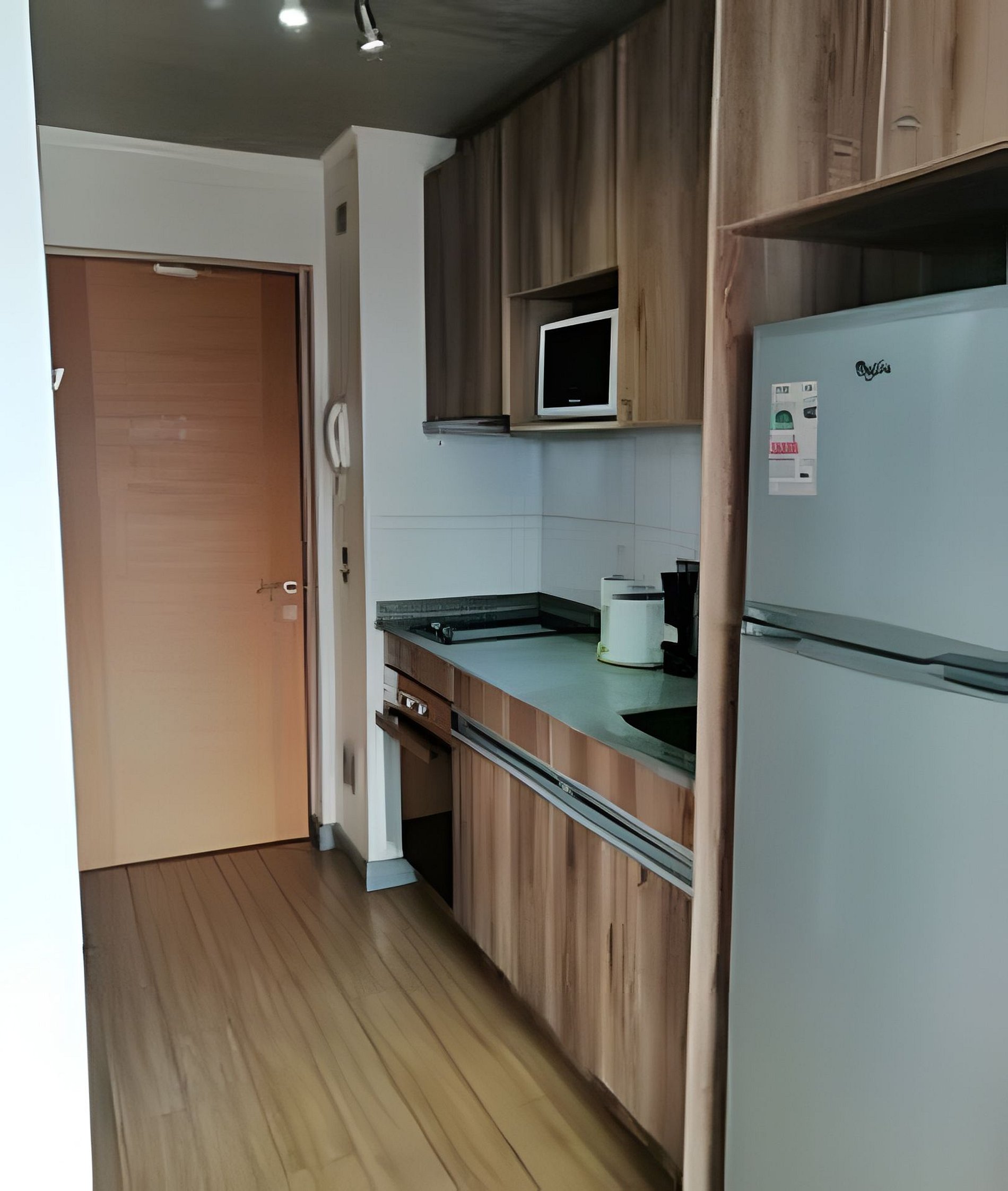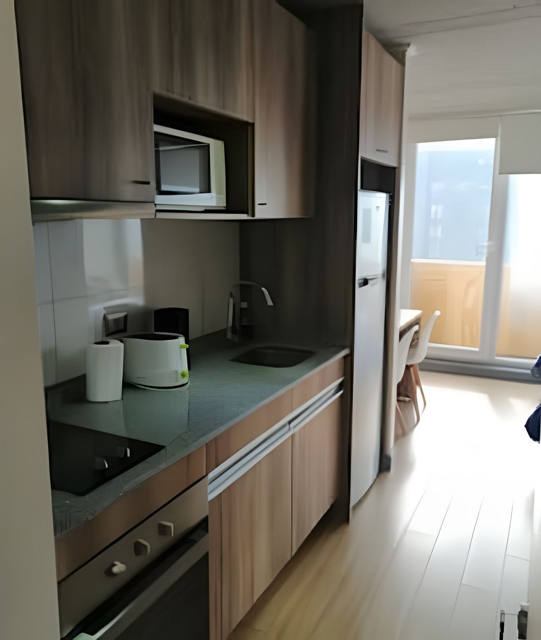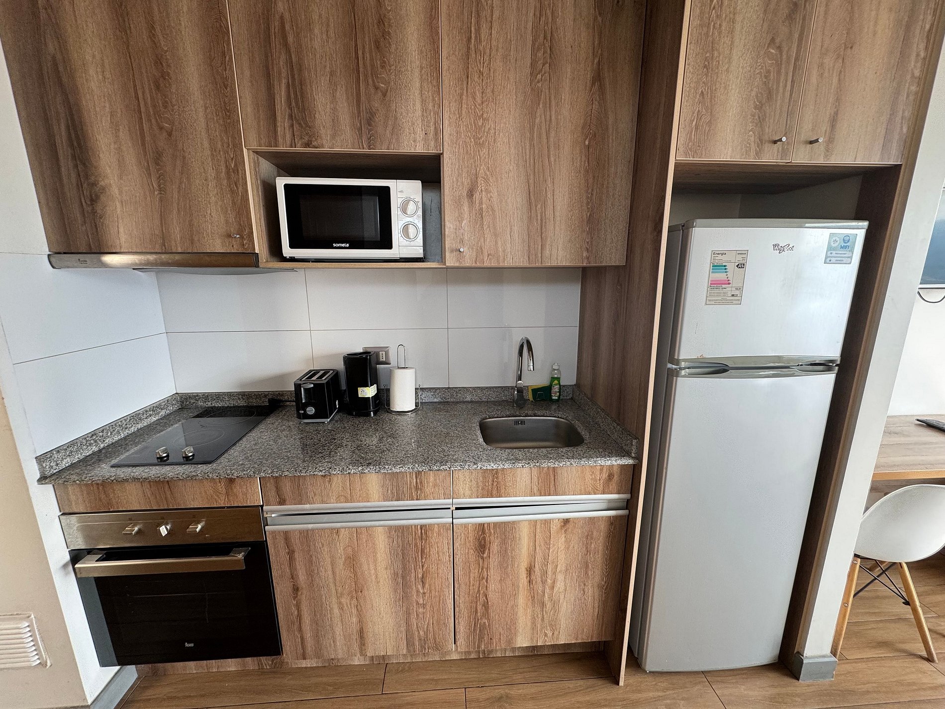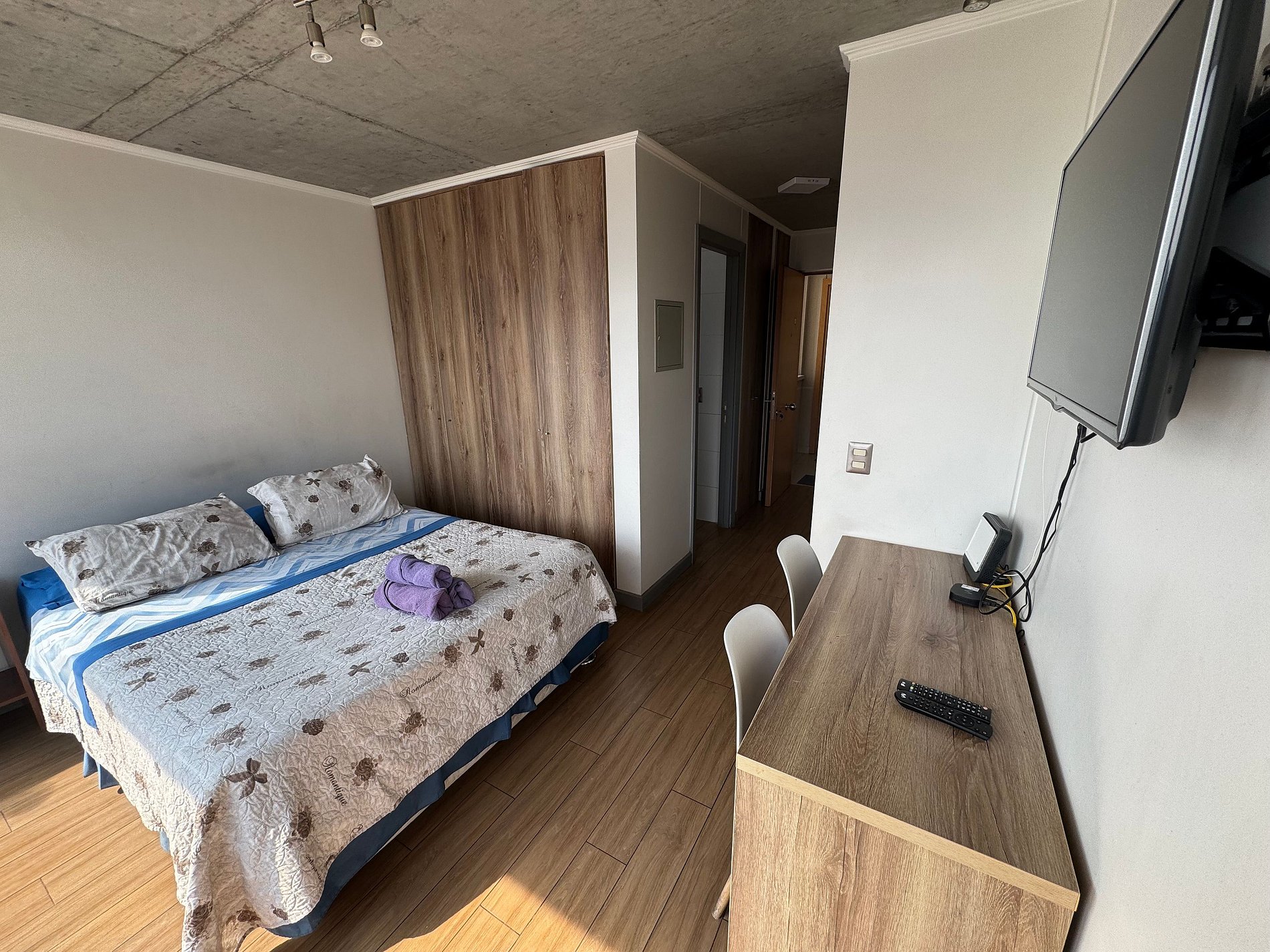 Este acogedor departamento estudio cuenta con una cómoda cama de dos plazas y un balcón para que disfrutes del aire libre. Además, dispone de wifi, televisión, armario amplio, cocina totalmente amoblada y un baño completo para tu comodidad.