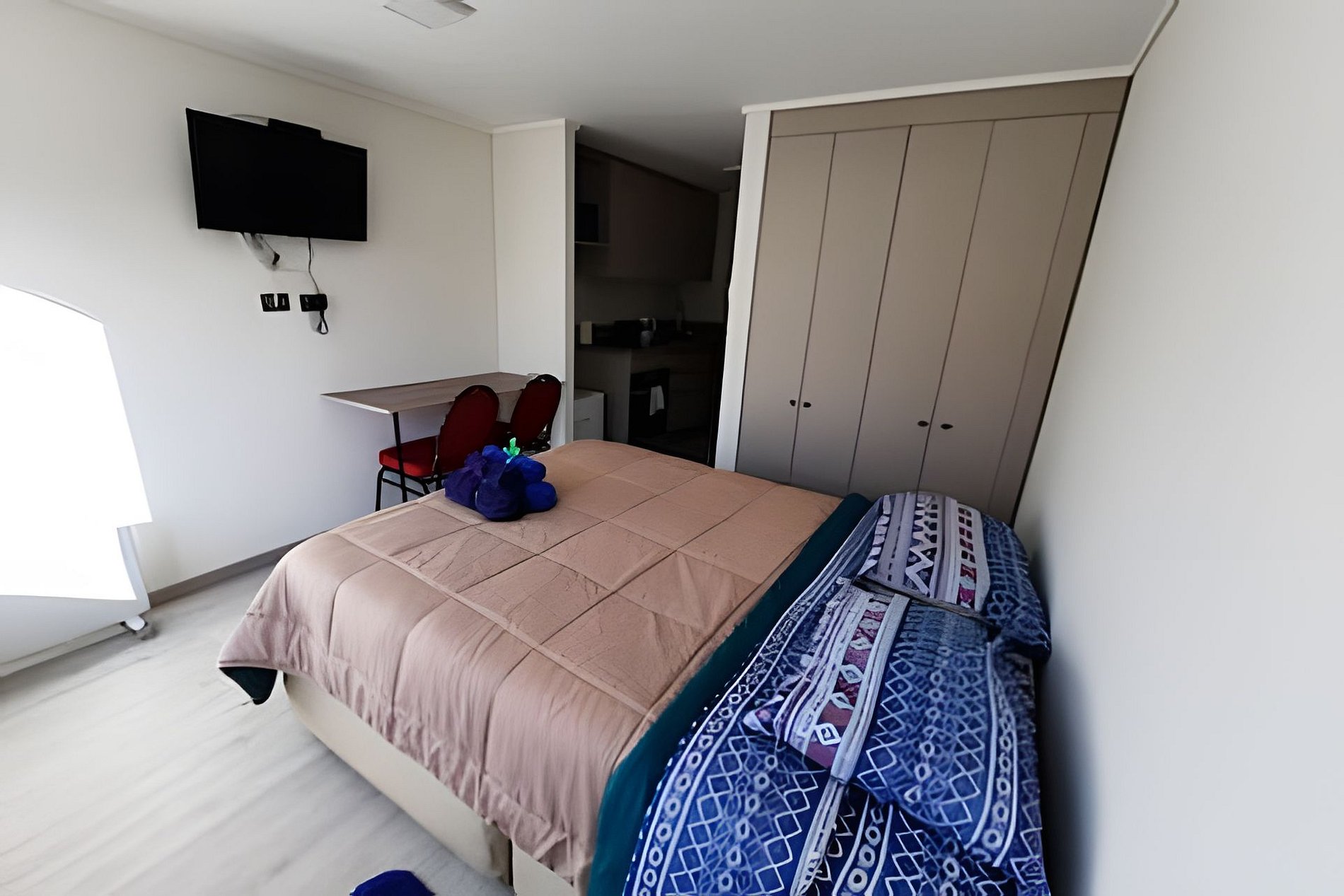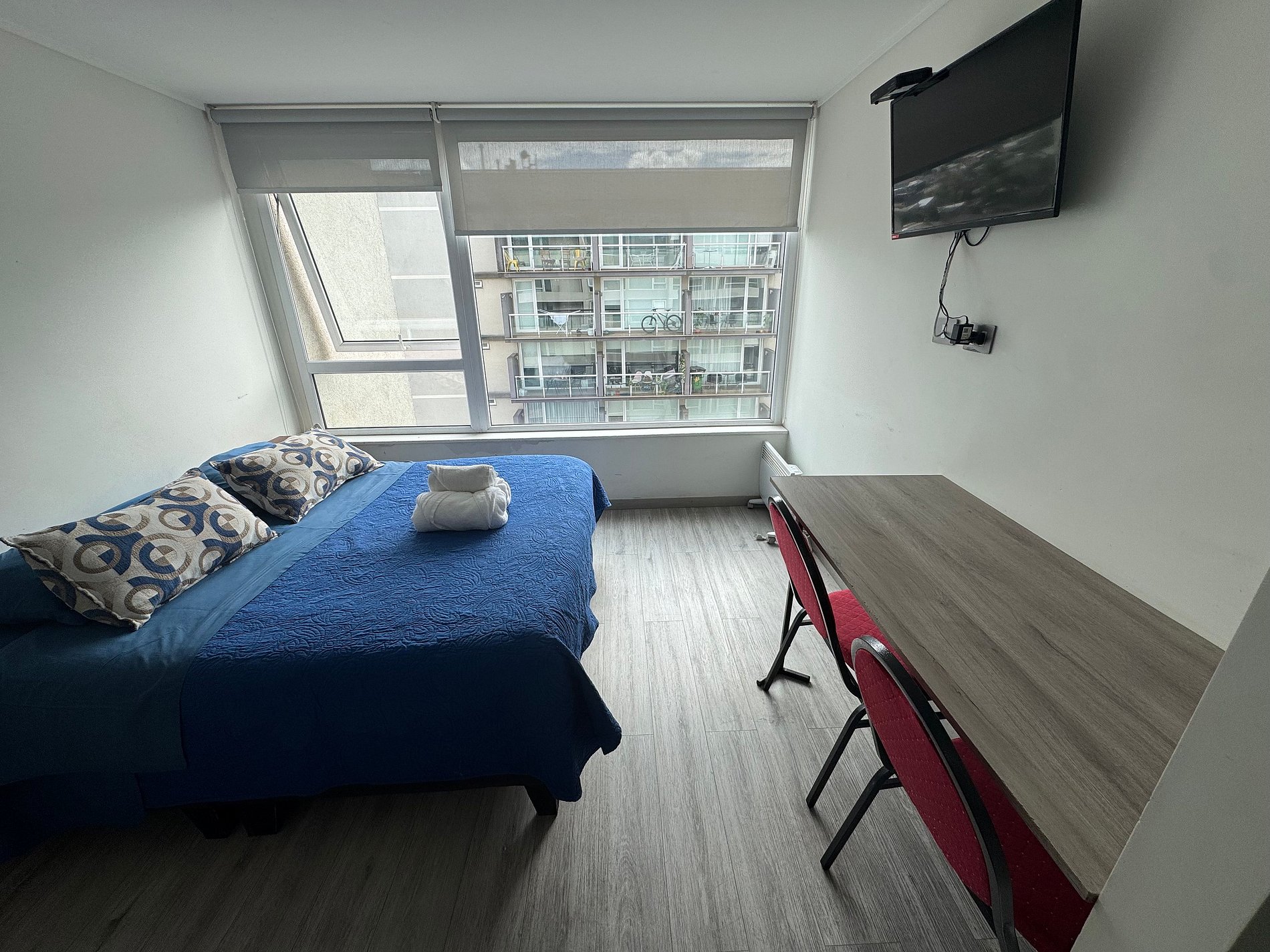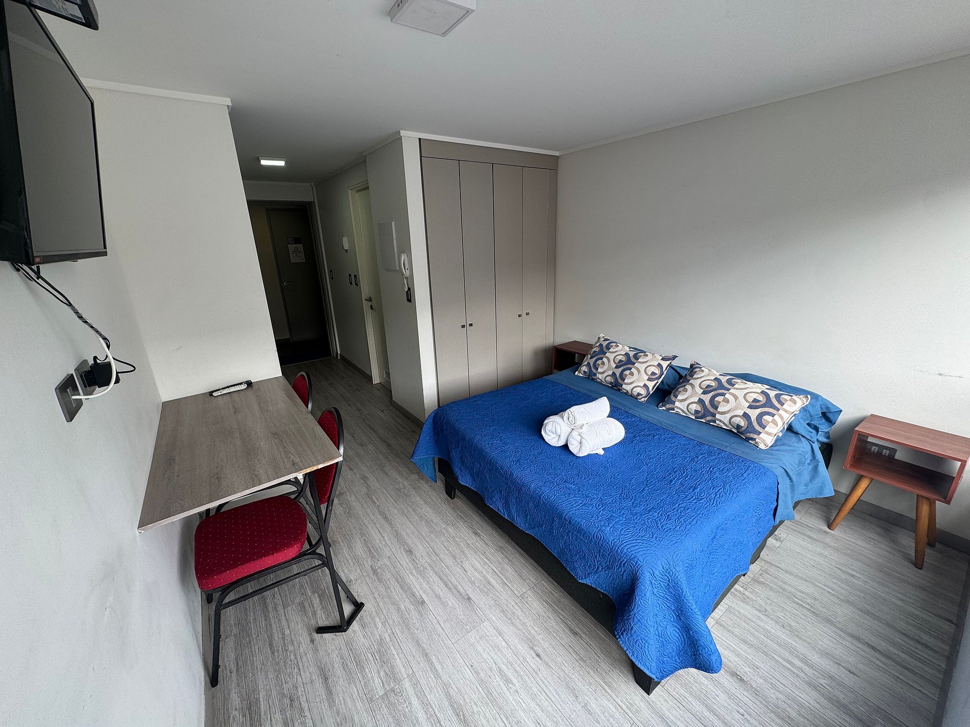 Depto. estudio de un ambiente, cuenta con una cama de 2 plazas, sin balcón, ubicación central y tranquila a metros de AV. Alemania.