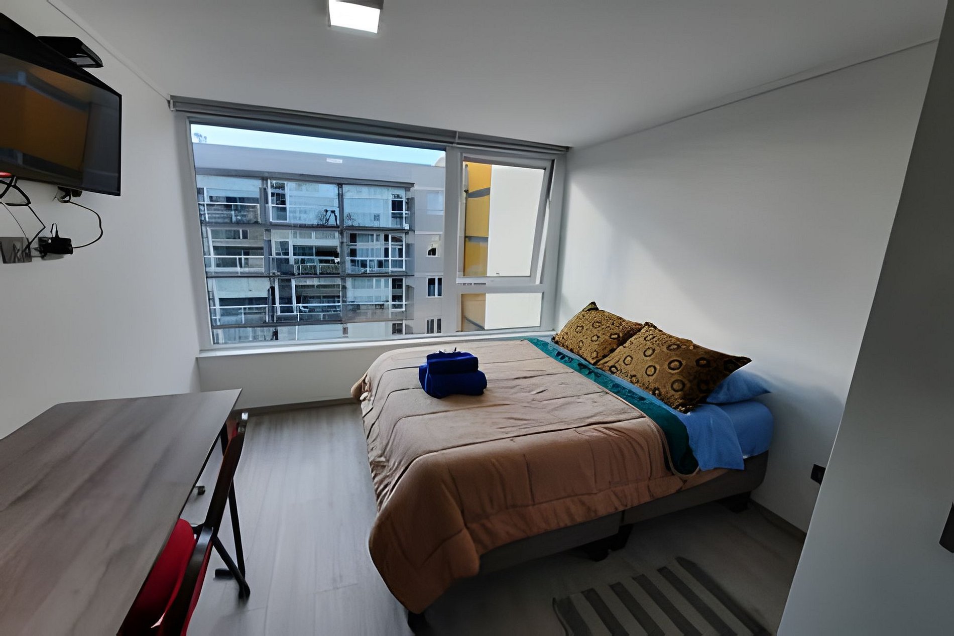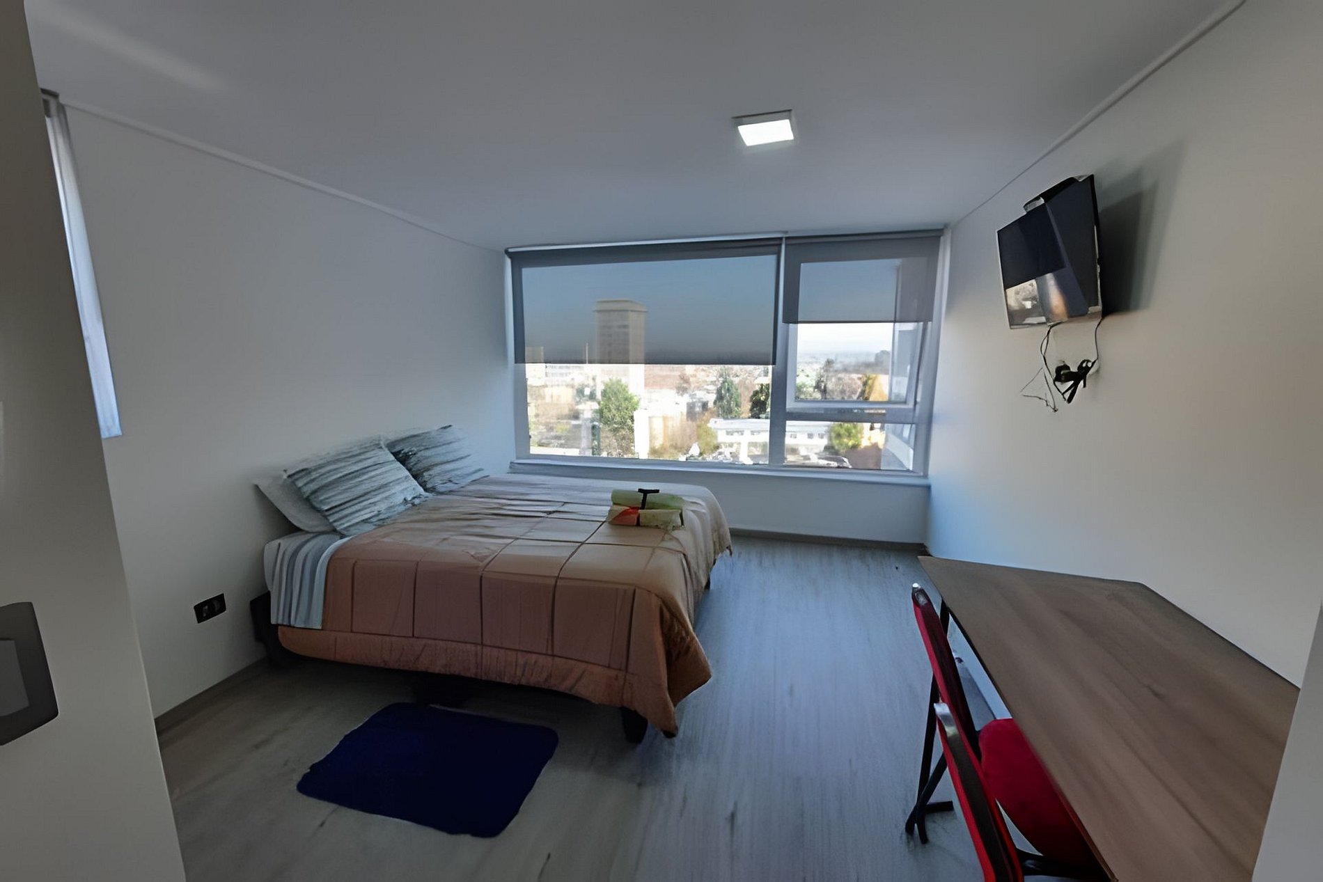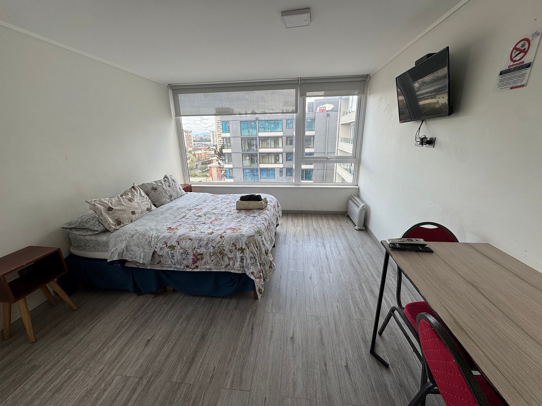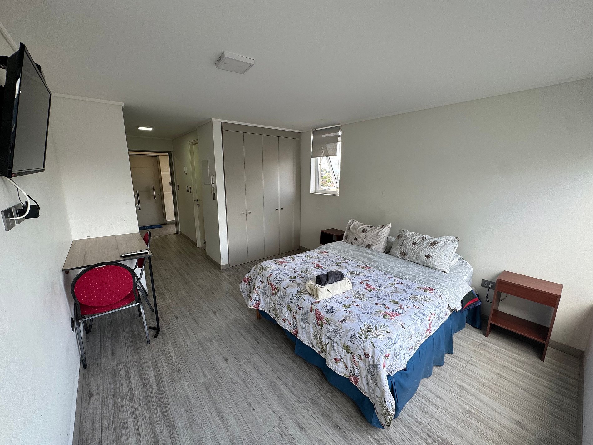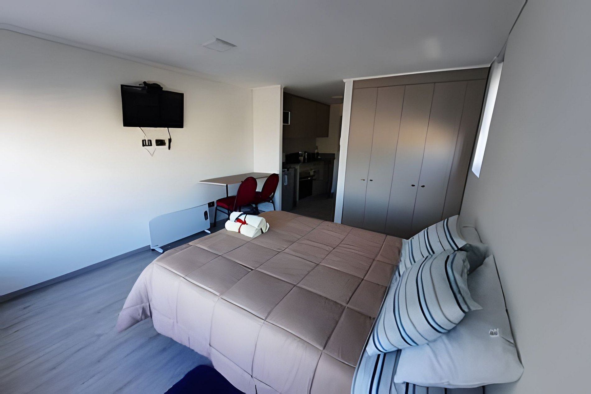 Depto. estudio de un ambiente, cuenta con una cama de 2 plazas, sin balcón, ubicación central y tranquila a metros de AV. Alemania.