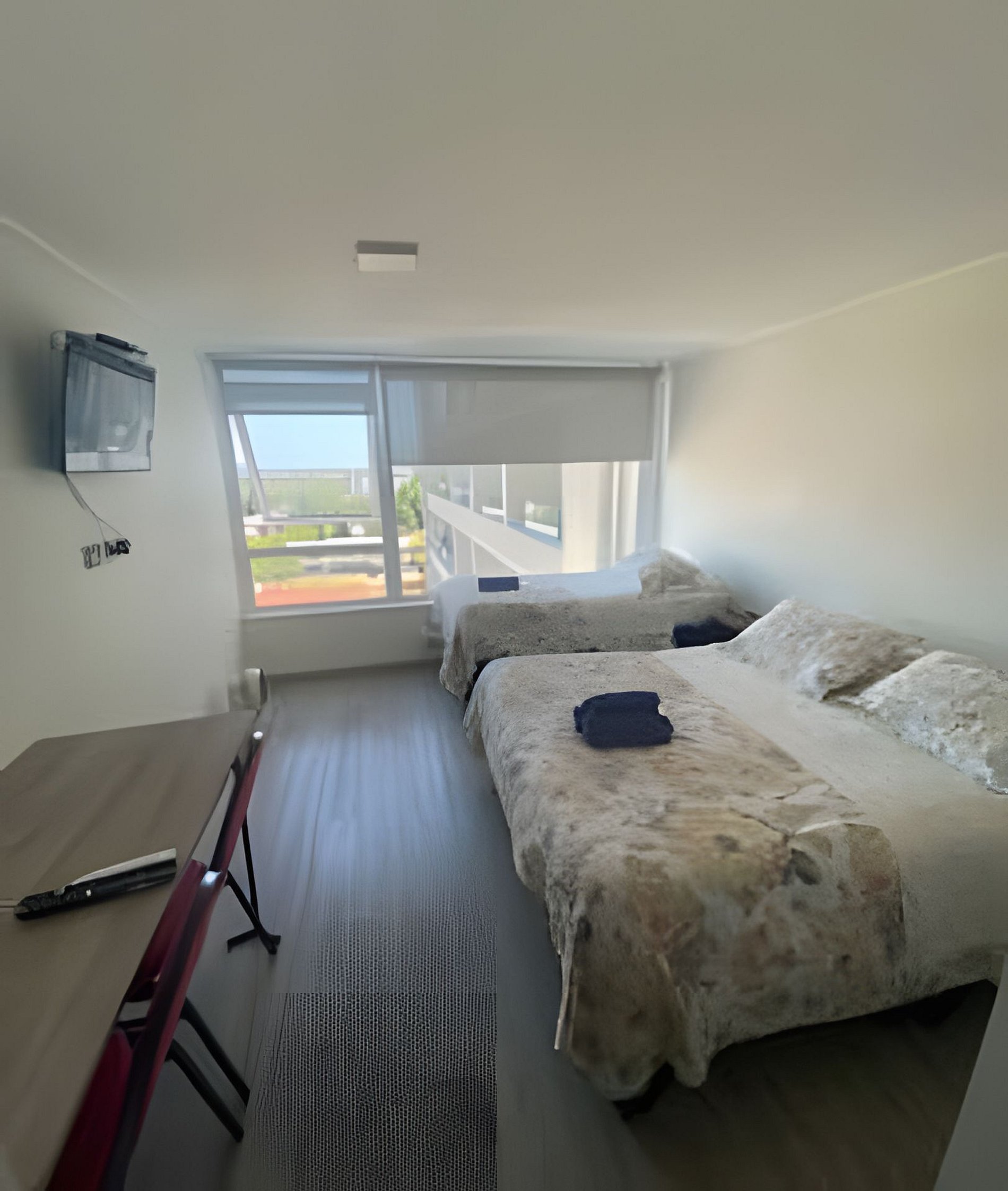 Depto. estudio de un ambiente, cuenta con una cama de 2 plazas + una de 1 plaza, ubicación central y tranquila a metros de AV. Alemania.